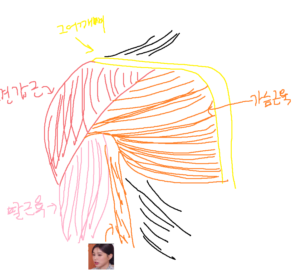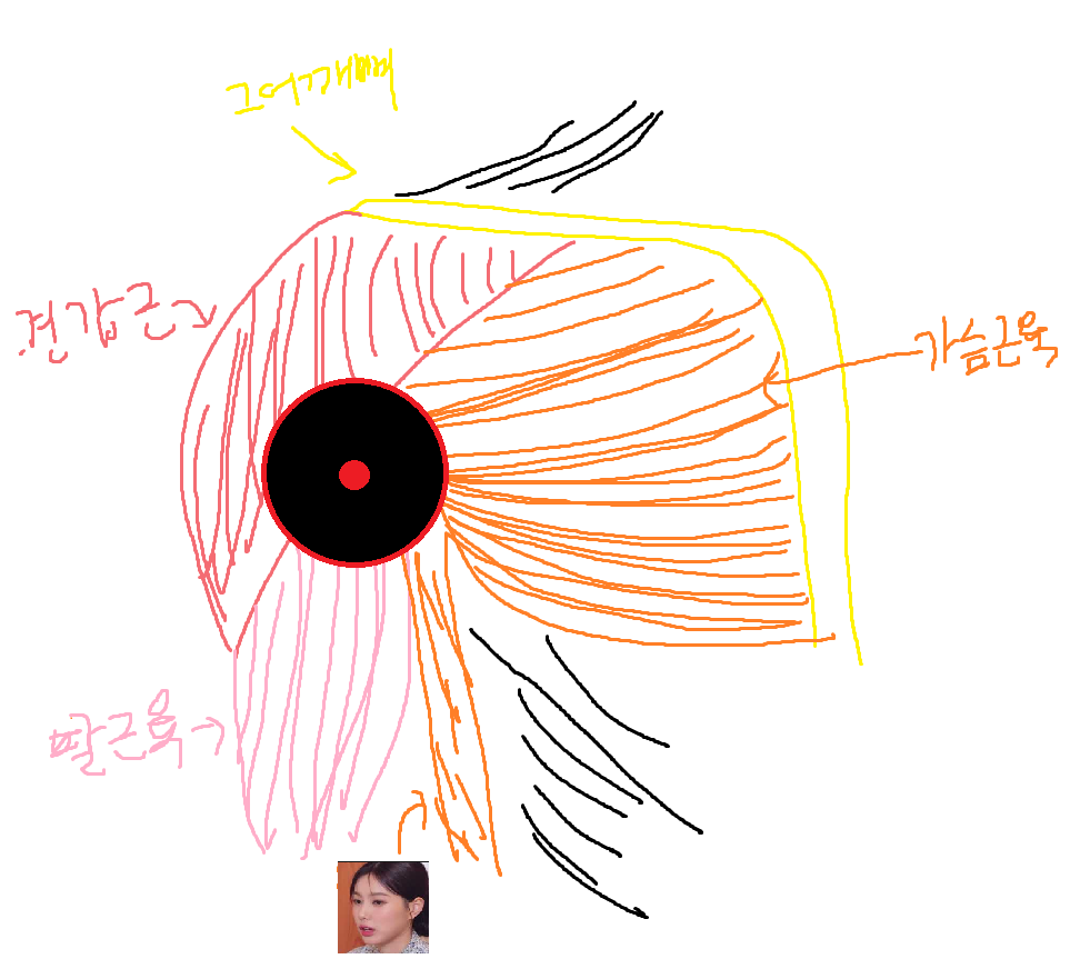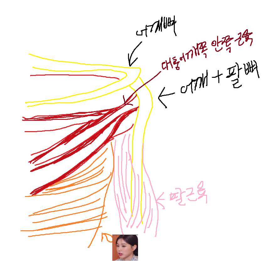 이런식으로 견갑근이 붙어 있답니다. 갑자기 웬 그림판과 근육 설명이냐!