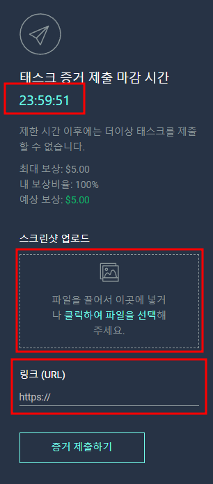 그러면 구매자는 24시간 이내에 미션완료 자료를 제출해야하고, 해당 미션은 스크린샷과 블로그 링크를 요청했으니 요청에 알맞게 제출 해주시면 됩니다.