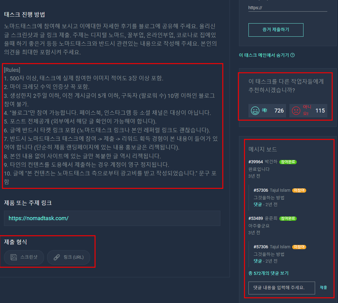 3년전에는 리뷰헌트라는 이름으로 참여했는데, 다시 돌아와보니 노마드태스크로 이름을 바꿨더라구요.
