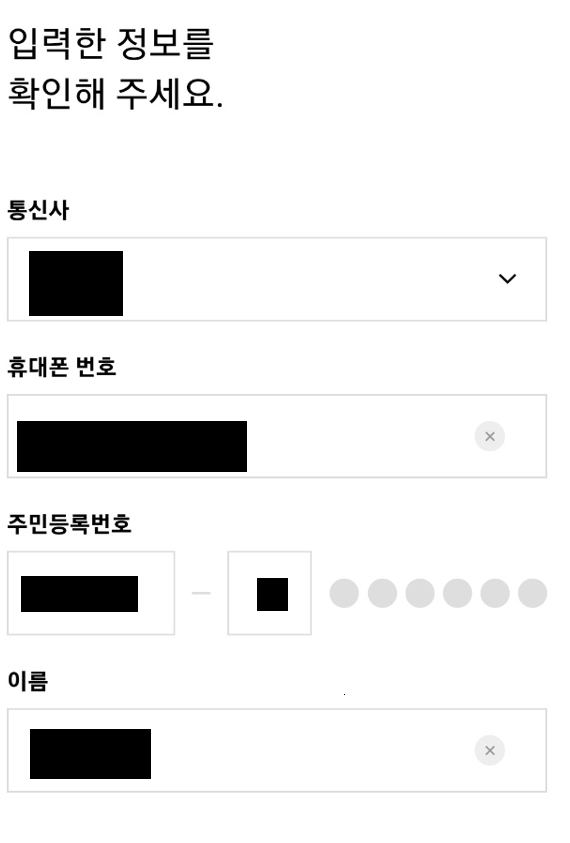 - 휴대전화 정보까지 입력해주시면 끝!