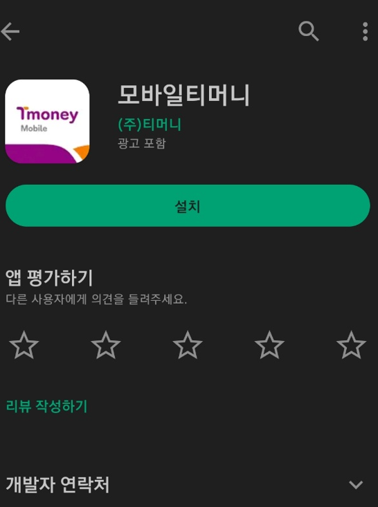 - Play Store에서 모바일티머니 를 검색해서 설치해주세요.