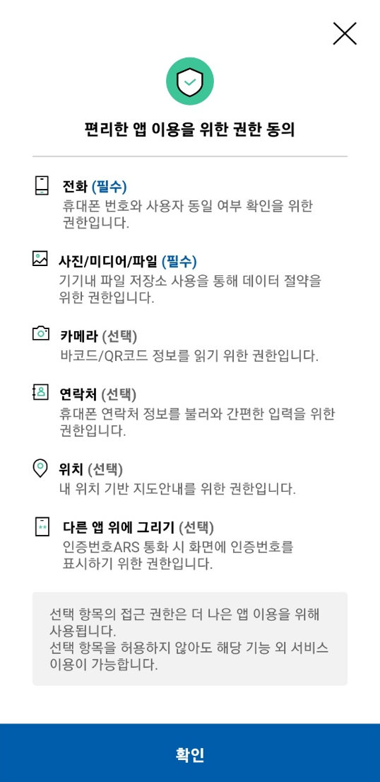 - 핸드폰 기능 권한 동의