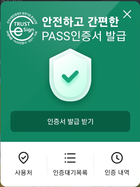 - 그러면 인증서 발급도 끝! 앞으로 모바일, PC인증에서 간단하게 PASS앱 인증하기 누리시면 됩니다.