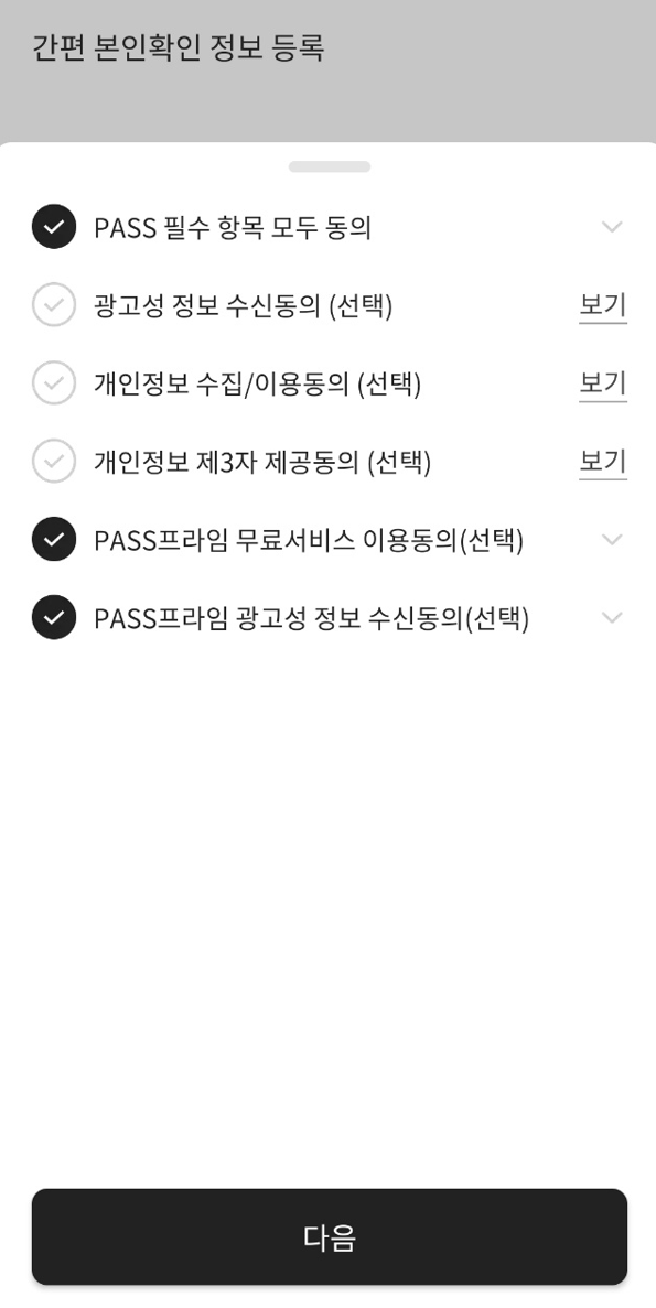 'PASS 필수항목 모두동의' 만 눌러주시면 돼요.
