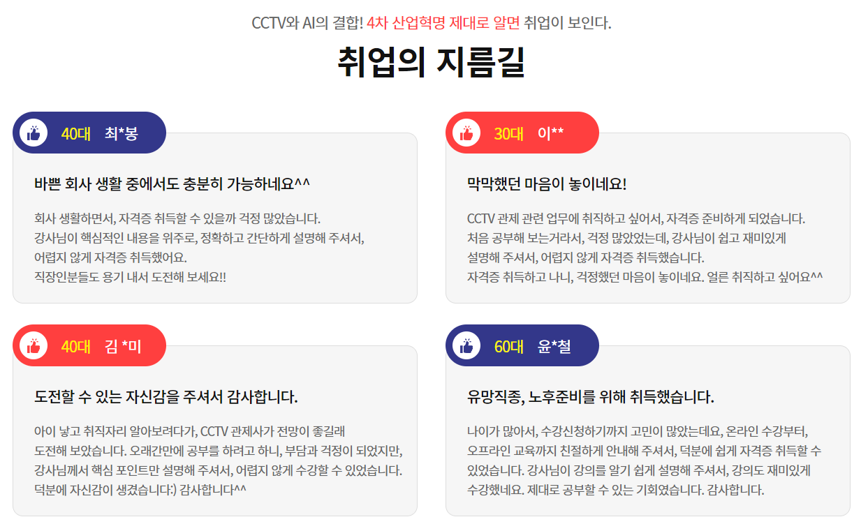 수많은 후기가 이미 검증된 자격증이라는 걸 증명해주고 있습니다.