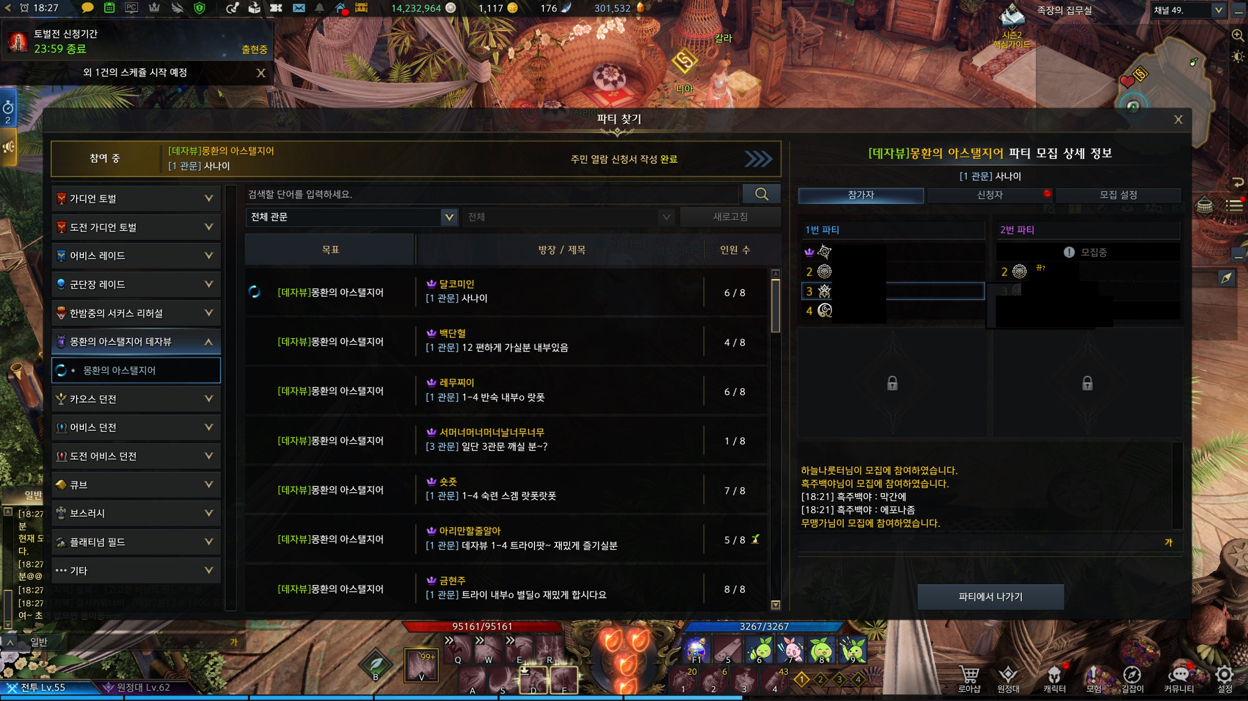 오늘은 길드분들이랑 데자뷰 1,2관문을 가기로 했습니다! 처음으로 내부딜러를 맡게 되었는데 프로켈이랑 열심히 놀았습니다 하하... 감금당해서 두번정도 죽고...(포션쌀먹하려다 실패..)